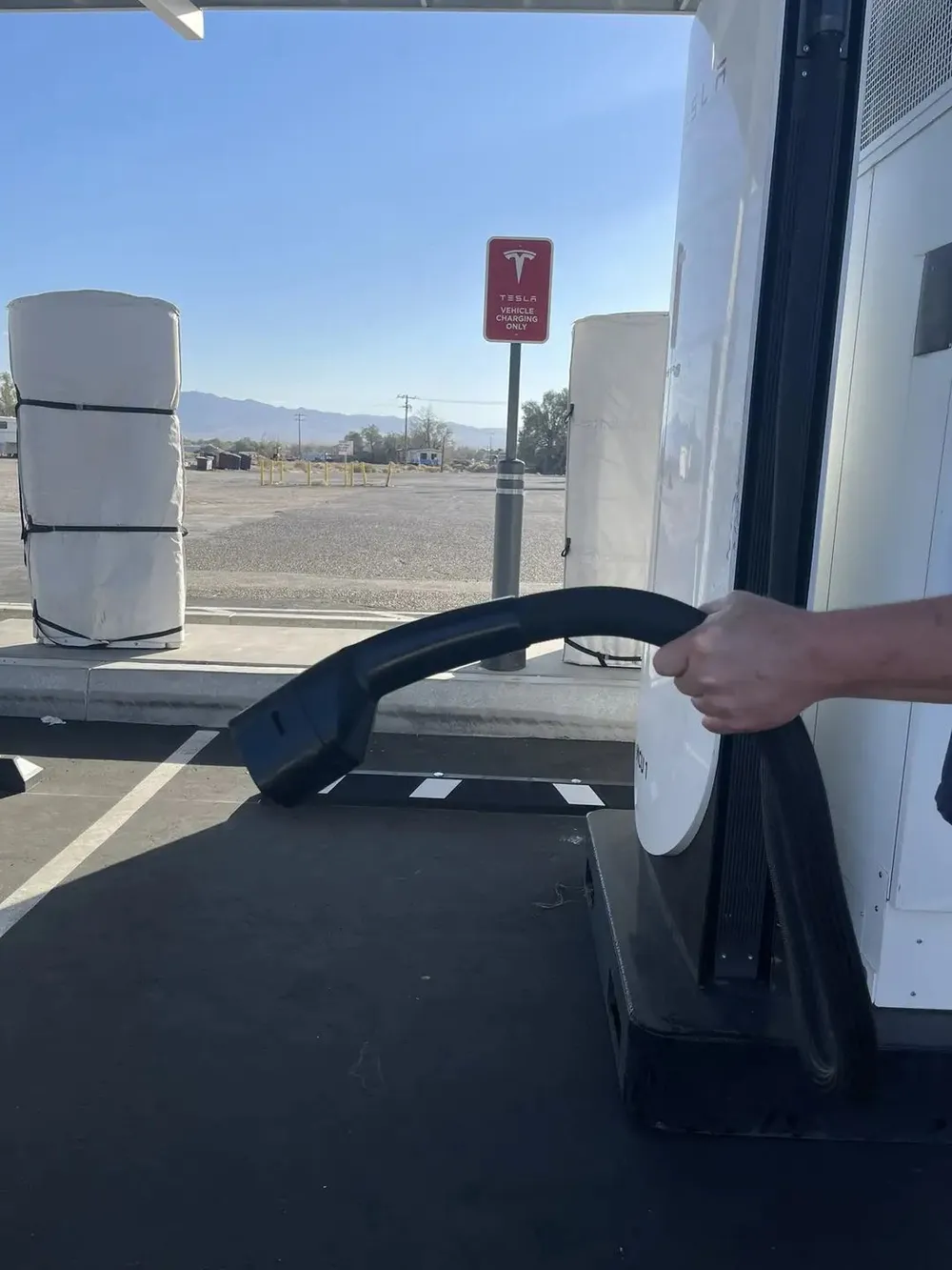 让你们看看特斯拉最新充电桩,这不完全全新标准么,来到国内不得套个头才能用?😄