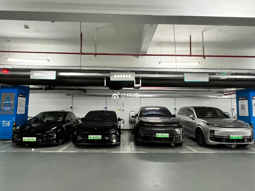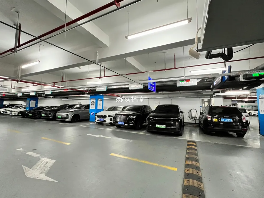 杭州萧山奥体印象城,地下车库蔚来充电车位8个,燃油车霸占3个,5个正常充电进行时…