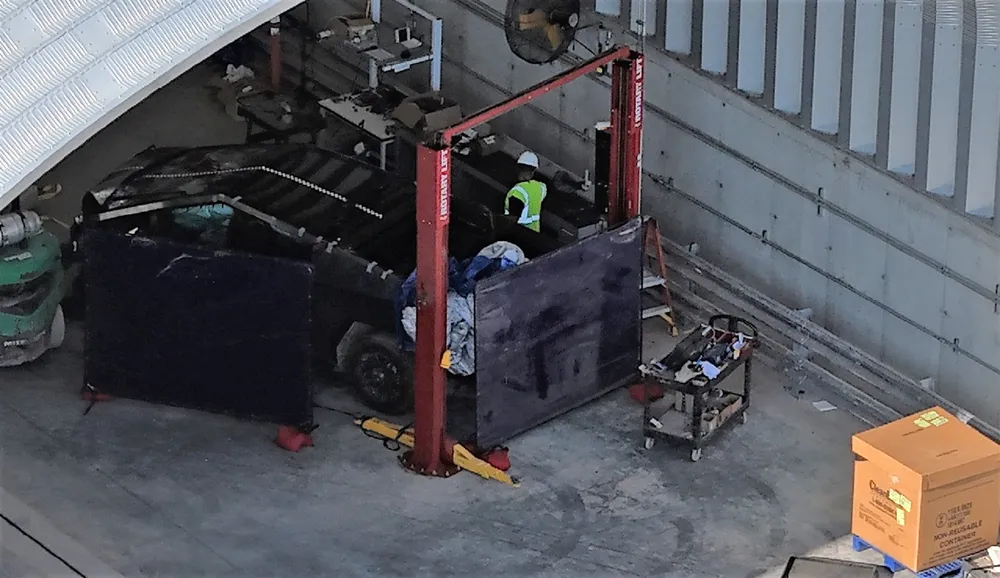 碰撞测试后的 Cybertruck ,据说特斯拉花了很多精力做这个车的行人保护。 这个车的前车身一体压铸特别不容易,这造型贵了去了。